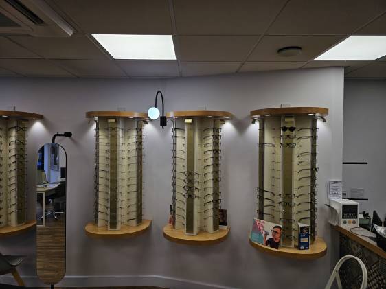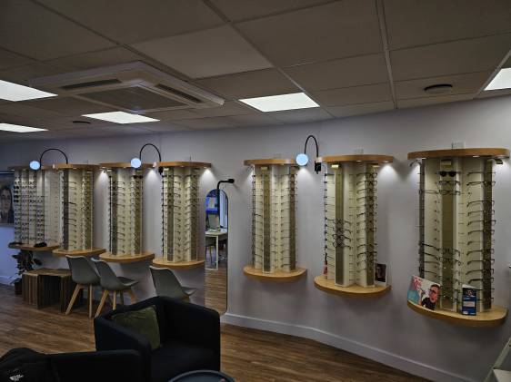 Full Shop set of wall mounted frame display units with built in lighting. 10 Display units in total.