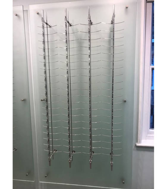 Green panels with lockable frame displays. 175cm x 94cm. Hold 80 frames each. Four units in total. One unit has a repair shown in the picture which we would sell at £200. Otherwise all excellent condition