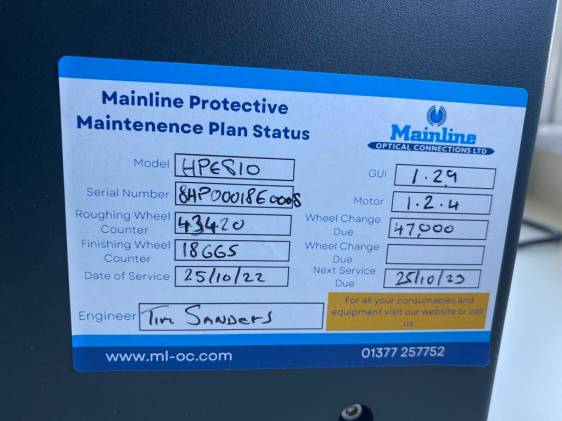 Model HPE810. Model HAD8000 both serviced Oct 2022 roughing wheel 43420 jobs. finishing wheel 18665.