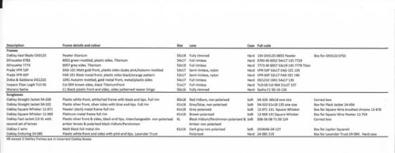 Frames and sunglasses left over from practice sale late 2015. All are new and unused, but were in stock for 2 years or more at the time of sale.