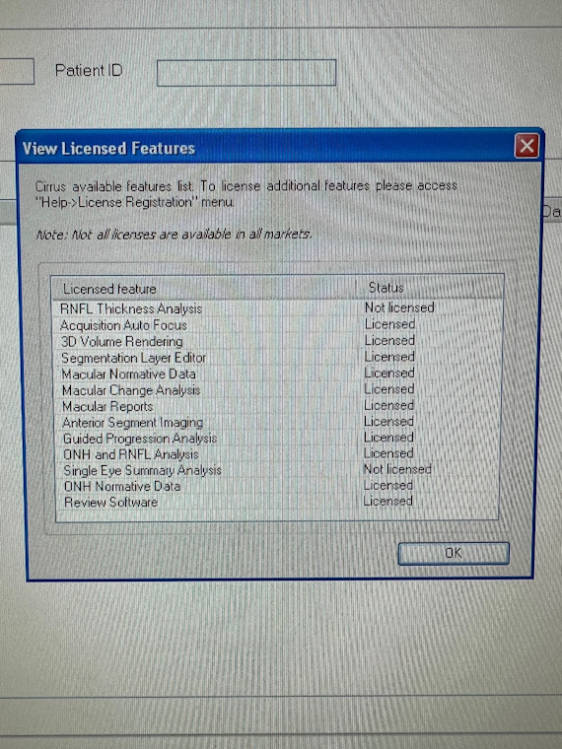 It has an extensive range of licences including macular analysis, macular normative data, macular change analysis, optic nerve head and RNFL analysis, guided progression analysis, anterior segment and more.