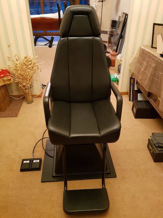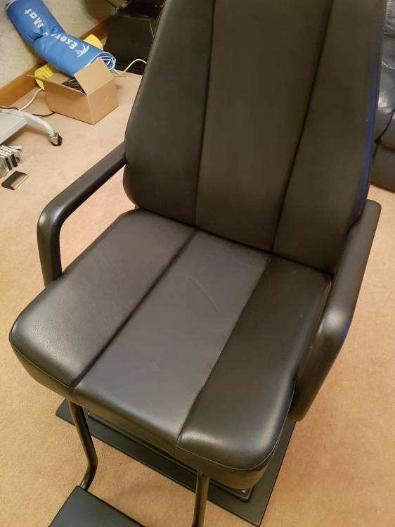 Motorised rotating optical chair with fully working footplate to adjust height and adjustable headrest.